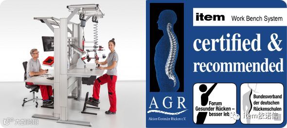 item 的工作台系统是第一家也是唯一一家被德国背部健康协会 (Aktion Gesunder Rücken e. V.) 授予 AGR 认证的工业工作台系统供应商。