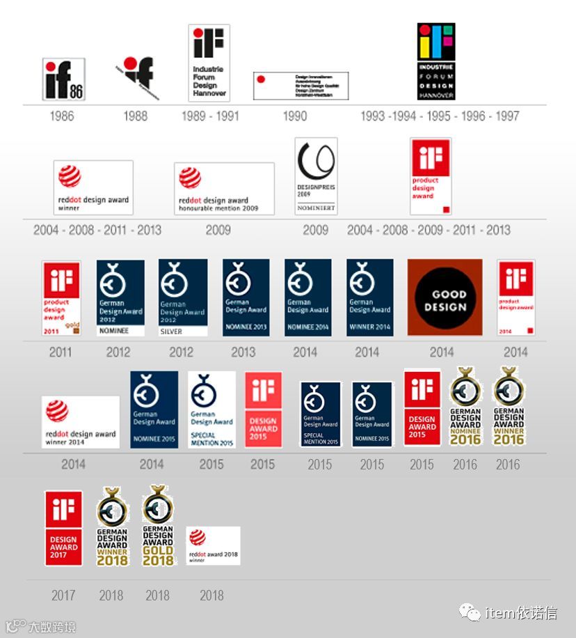 item 从一开始就非常注重产品的设计和研发,每年都会推出春秋两季新产品,而且每年都会斩获各种国际知名设计大奖。最早在 1986 年,就获得了当时含金量非常高的 IF 大奖。