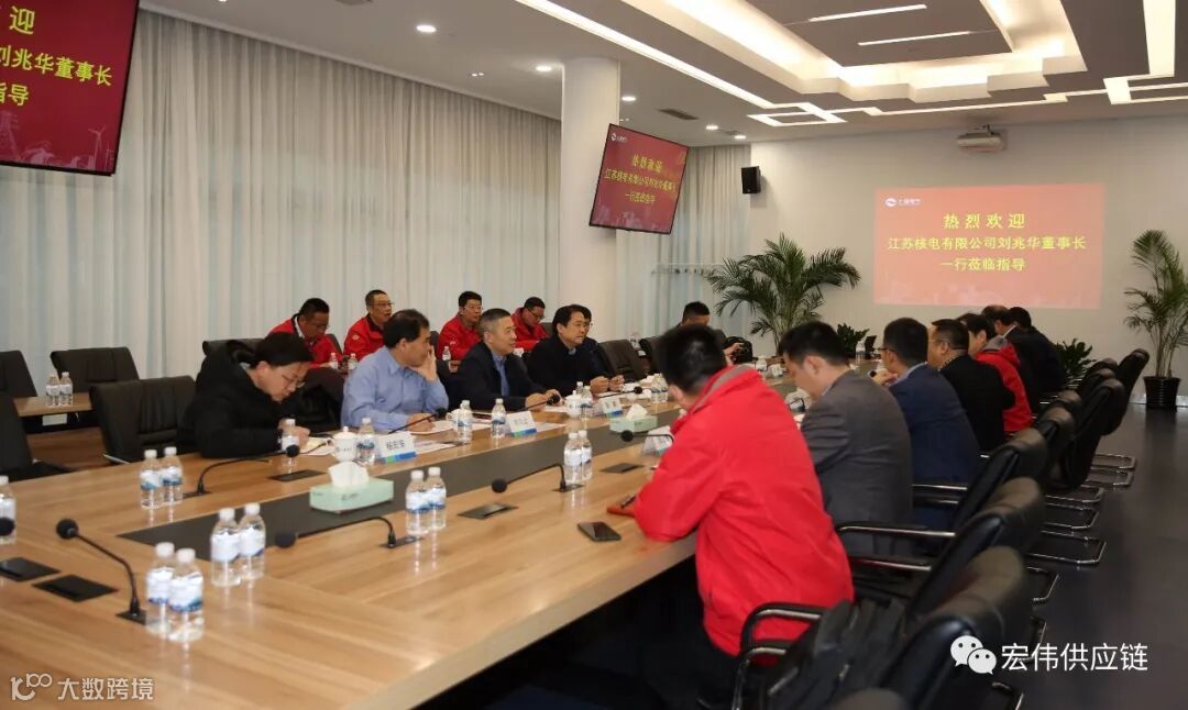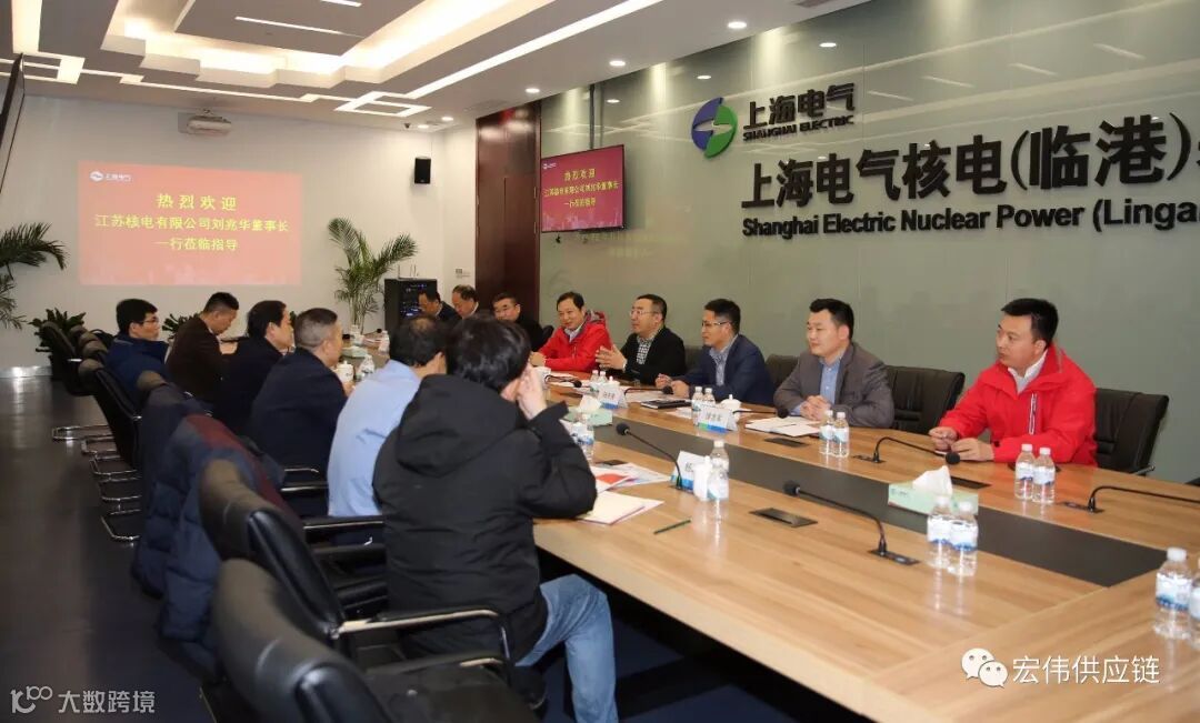 2月25日,集团董事长吕宏伟携现代物流事业部总监马鹏翔、事业部总监李剑、核与新能源事业部总监孟庆柱等一行前往上海电气核电设备有限公司(下称:上核)展开新年拜访和业务交流。与此同时,江苏核电有限公司(下称:江苏核电)董事长刘兆华带队到访上核,考察我司在上核厂区的仓储管理业务。江苏核电副总经理张雄、处长马援东、副处长刘克让等随行考察。上海电气核电集团总裁邵建明对江苏核电刘董和我司领导一行的到来表示热烈欢迎。