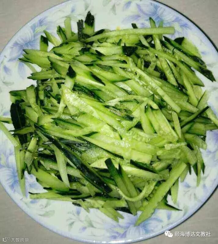 9、最后把黄瓜切丝儿, 凉皮切条,准备好油泼辣子,加醋生抽盐,加点儿糖为了提鲜儿,加蒜水、五香醋水,加蒸好的面筋,排盘 搅拌吧!