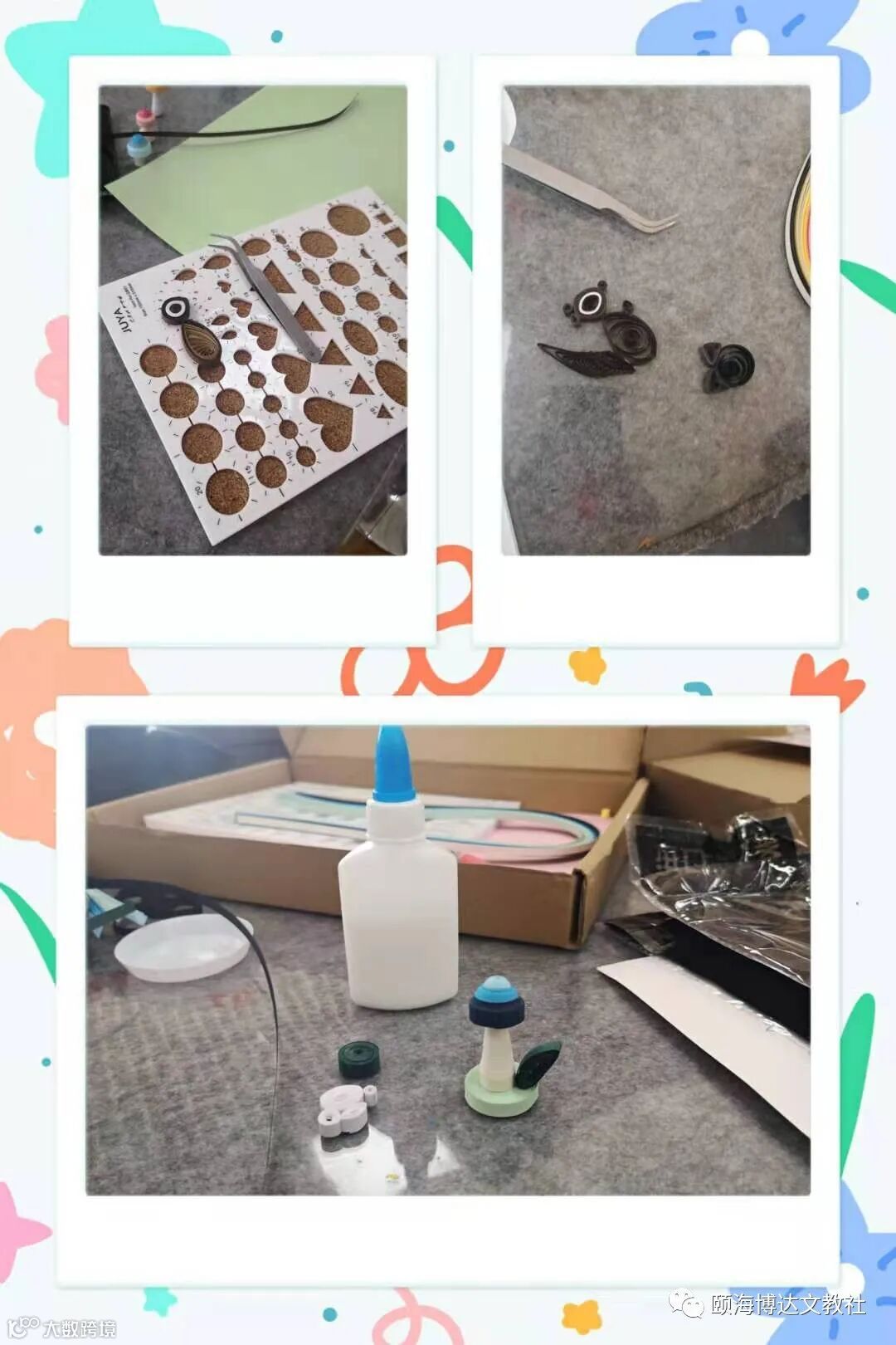 活动一开始,同学们对上一堂课教过的立体衍纸作品制作的知识,回顾了大致步骤。紧接着,大家开始了立体衍纸的新的制作步骤学习。