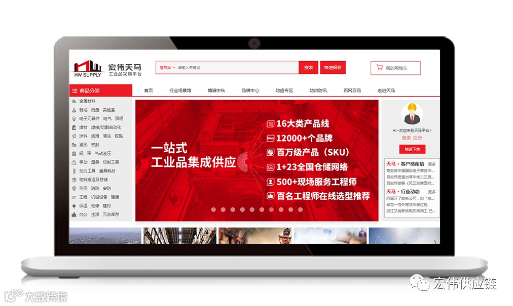天马平台(www.tima365.com)是宏伟供应链基于20年工业供应链行业经验倾力打造的工业互联网平台,依托百万产品链接数万供应商伙伴,通过TSCB创新的商业模式赋能上下游企业。天马平台现已拥有百万级SKU,涵盖16大品类的大宗材料和MRO工业品,合作的品牌超过12000家。