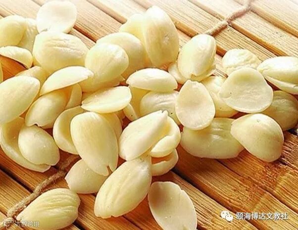 3、过量服食杏仁(无论是苦或者甜)会引起中毒,故在食用前必须先在水中浸泡多次,并加热煮沸。