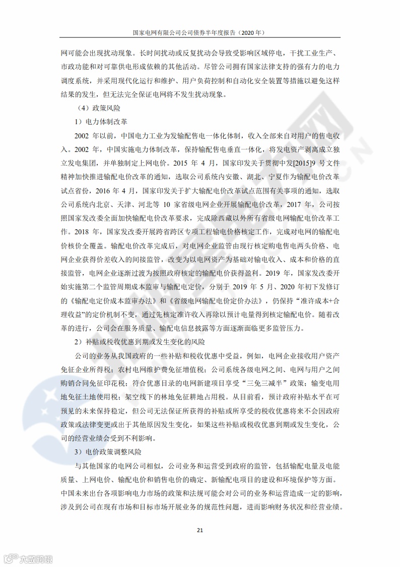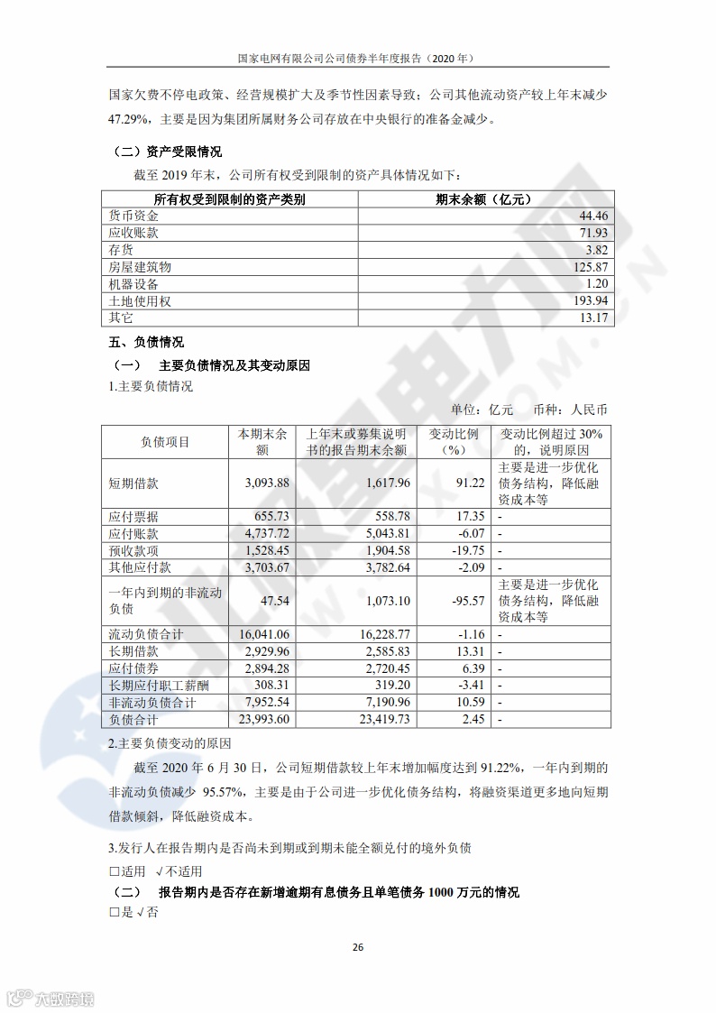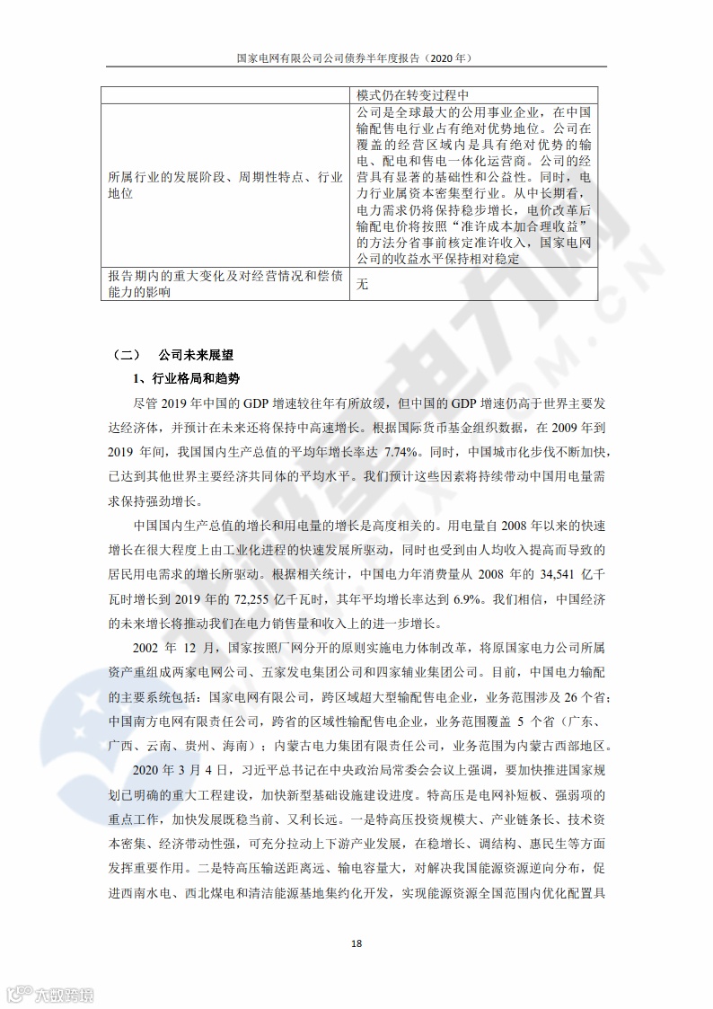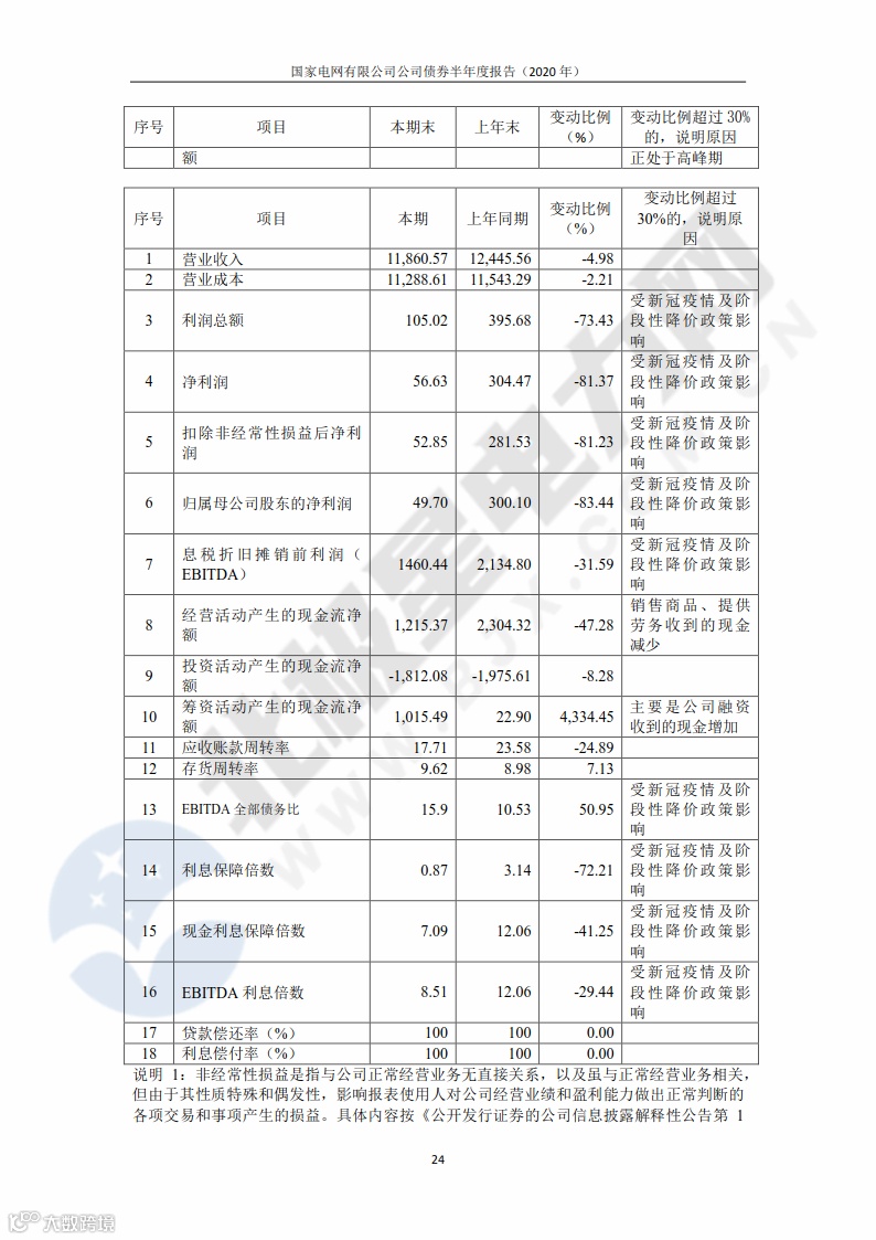 近日,中央结算公司发布了《国家电网有限公司债券半年度报告(2020年)》,报告公布了国家电网公司上半年未经审计的财务报告。