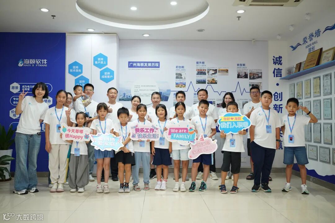 紧接着,活动进入第二站——广州海颐家庭开放日。小朋友们走进父母的工作场所,实地探访办公区,感受企业使命与价值观的温暖力量。