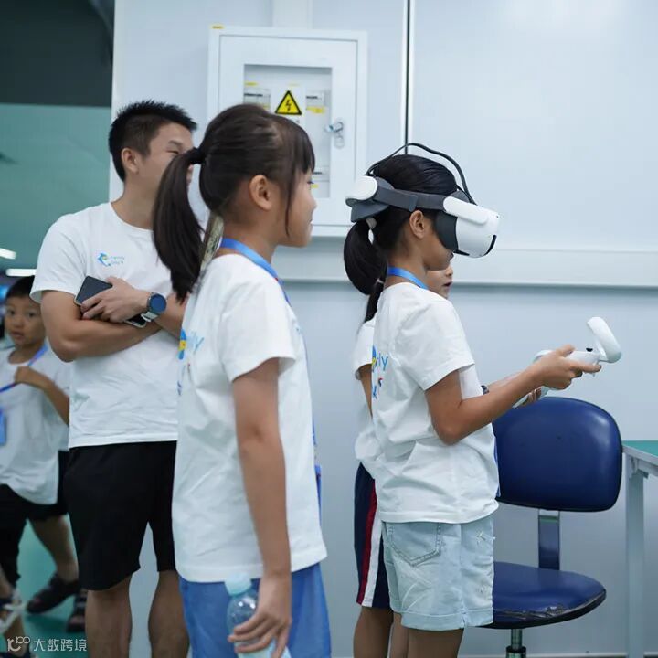 随后,小朋友们戴上VR设备"穿越"至电磁波世界,通过沉浸式互动,直观感受到科技的魅力,欢笑与惊叹声不断。