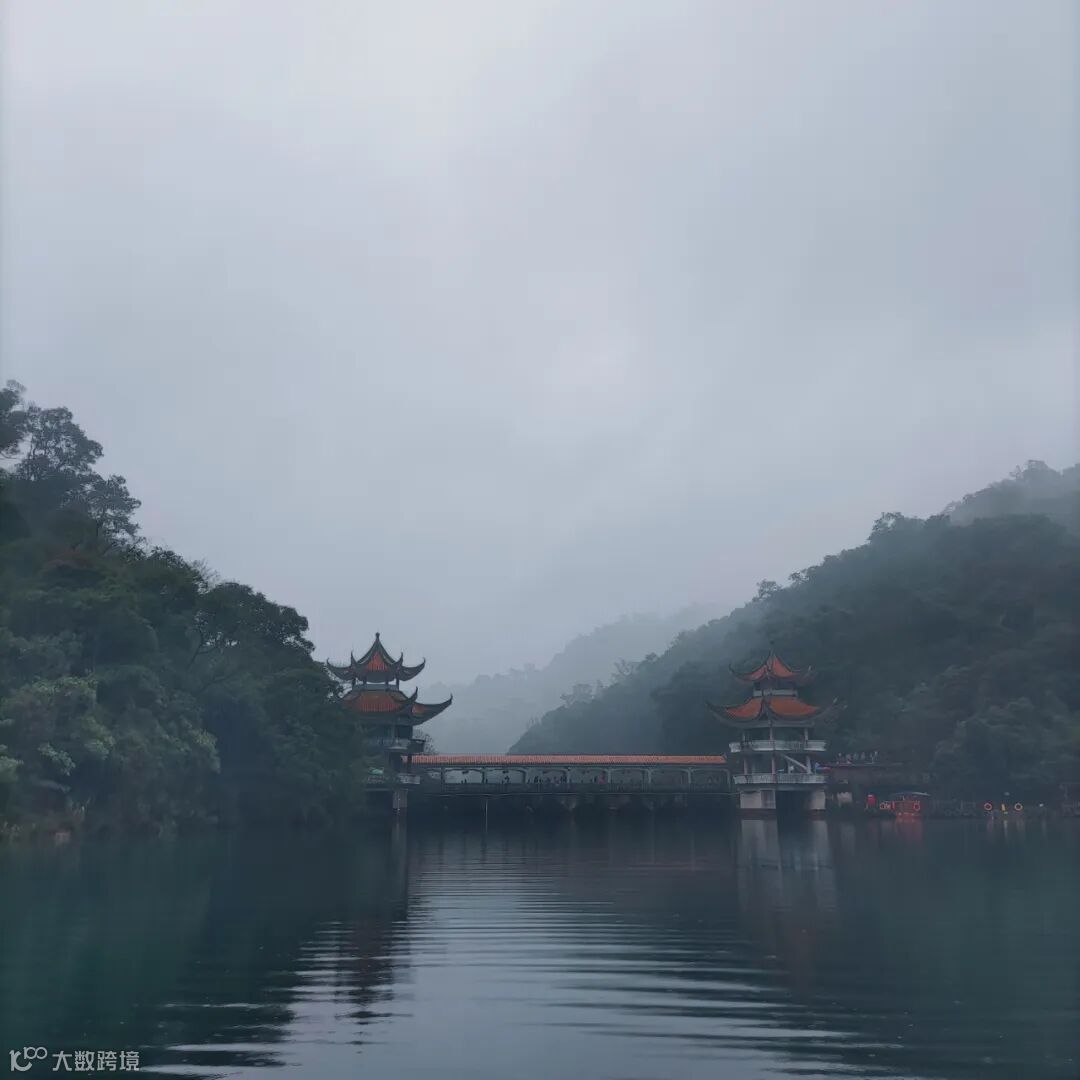 经过了宝鼎园,我们继续向前,往着蝴蝶谷出发,蝴蝶谷是鼎湖山四大景点之一,由碧湖、小岛和森林三个部分组成,到达古色古香的亭台和廊桥时下起了倾盆大雨,随着雨水的落下,我们稍作歇息补充体力。雨停后在码头乘船前往,沿岸建筑古色古香,层峦叠翠,上出重霄,下雨天意境尤为雅致,成员们纷纷在此合影留念。