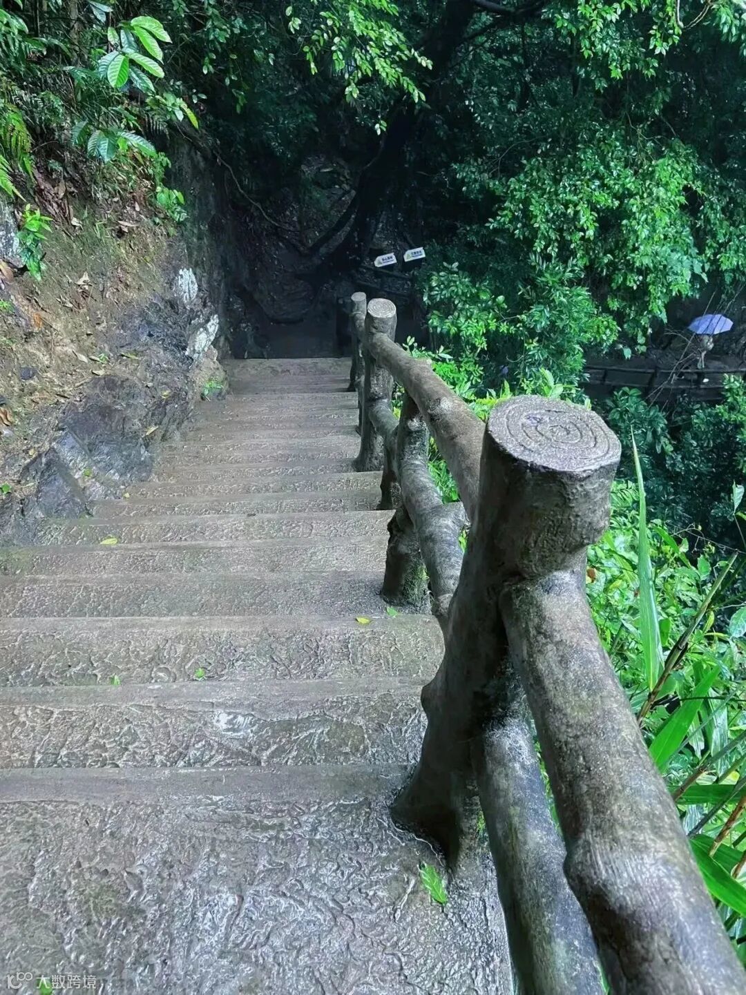 在离开庆云寺前往飞水瀑的时候,淅淅沥沥的小雨变成了倾盆的大雨,让众人都始料不及。走上延边的楼梯,大家才得以一览飞水瀑的全貌,再加上暴雨的冲刷,陡峭的楼梯也有些湿滑。在这种时候,却是最显现团结精神的时候,所有人团结协作,手拉手,肩并肩,互相扶持,就像在日常工作中的那样,克服困难,超越自我。