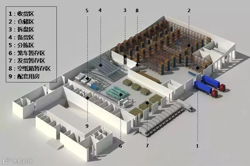 发货的时候是零散的,不是整批的发,所以零散发有专门一个区叫拼装区。