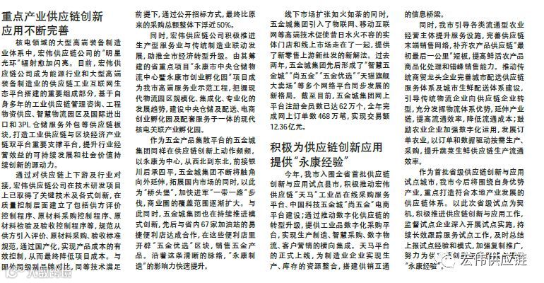 核电领域的大型高端装备制造业体系中,宏伟供应链公司的“明星光环”辐射愈加闪亮。目前,宏伟供应链公司成为能源行业和大型高端装备制造业的供应链工业互联网生态平台搭建的重要组成部分,基于自身多年的工业供应链管理咨询、工程物资供应、智慧物流园区及国际进出口和3PL仓储服务外包等供应链板块,打造工业供应链与区块经济产业链双平台重要支撑平台,提升行业经营效益的可持续发展和社会价值持续创新的源动力。