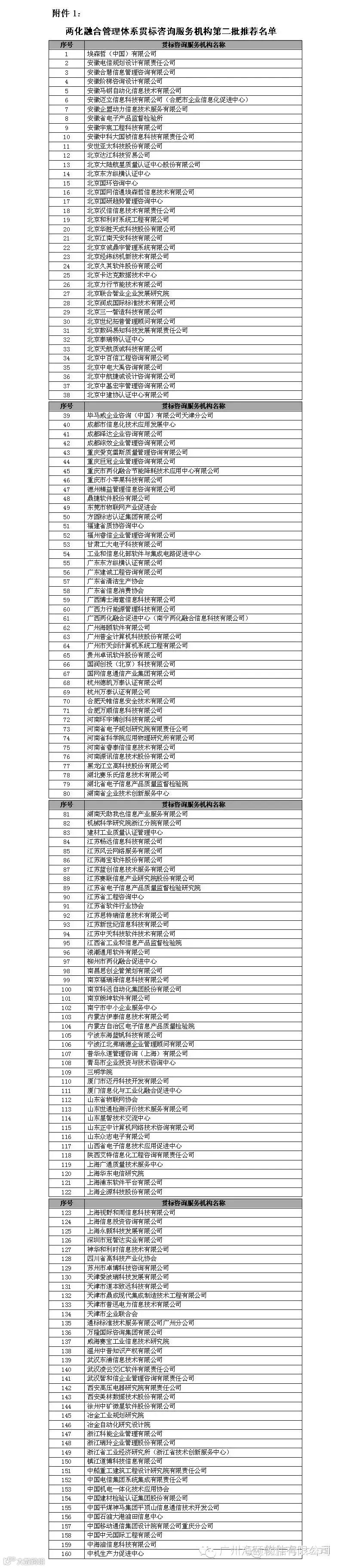 1.两化融合管理体系贯标咨询服务机构第二批推荐名单