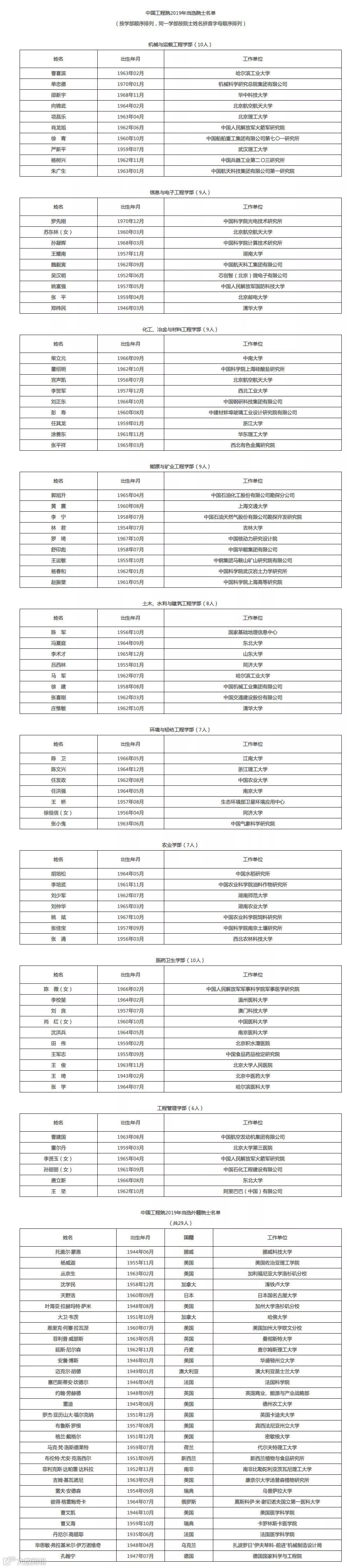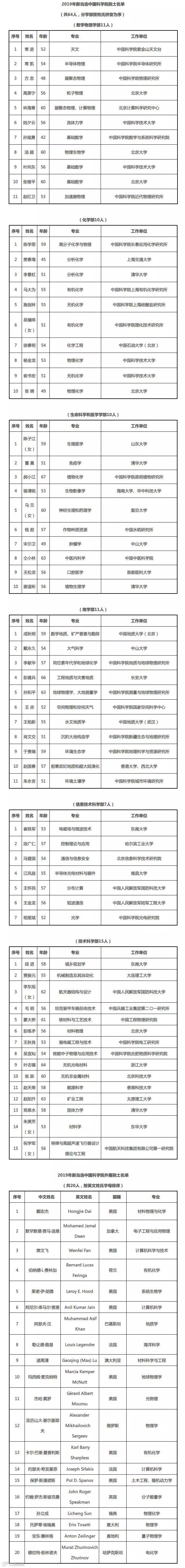 导读:今天,中国科学院、中国工程院公布了2019年新当选院士名单。2019年中国科学院选举产生了64名院士和20名