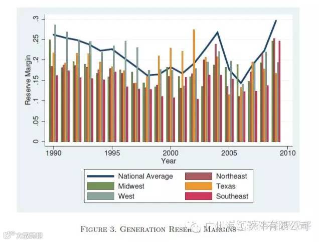 在九十年代早期电改开始之际,绝大多数地区的发电备用容量率很高(见图3)。在几年前(随着间断性可再生能源比重上升),这一数值仍是衡量资金调度效率的有效替代方式。备用容量率高通常表示装机容量未有效利用。较低的利用率则增加了平均成本,而这个成本将平摊到每个用户。同时低利用率通常意味着相对较低的边际成本,导致区域批发电价较低。此外,九十年代较低的天然气价格也促成了低区域批发电价。