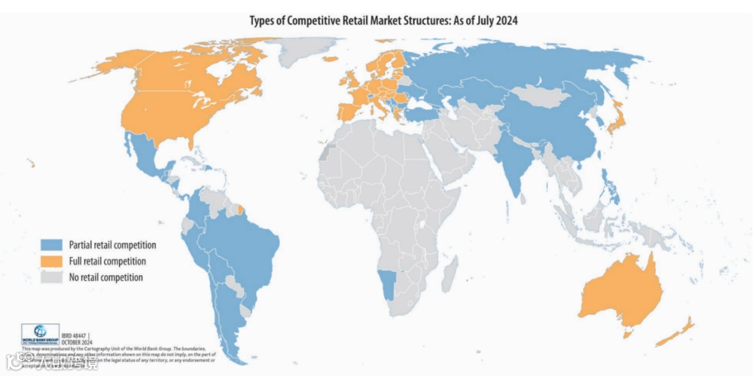 在世界银行调研的230个经济体中,有66个经济体允许在零售领域进行一定程度的竞争。其中32个经济体允许有限度零售侧竞争,大部分位于拉丁美洲;34个经济体允许全面零售侧竞争,主要分布在更先进的欧洲国家,然而,技术进步——特别是通过部署智能电表实现的电力行业数字化,正在为发展中国家未来推行零售侧竞争机制开辟全新路径。