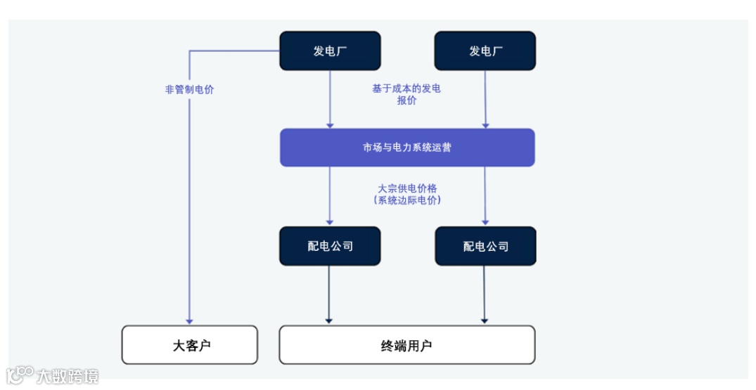 (2)电力池模式(总池结算):发电商提交供电价量组合,用户申报用电需求,电网调度中心根据供需申报计算次日每小时的实时电价,所有交易通过电网运营商集中清算,禁止发电商与用户直接签约。