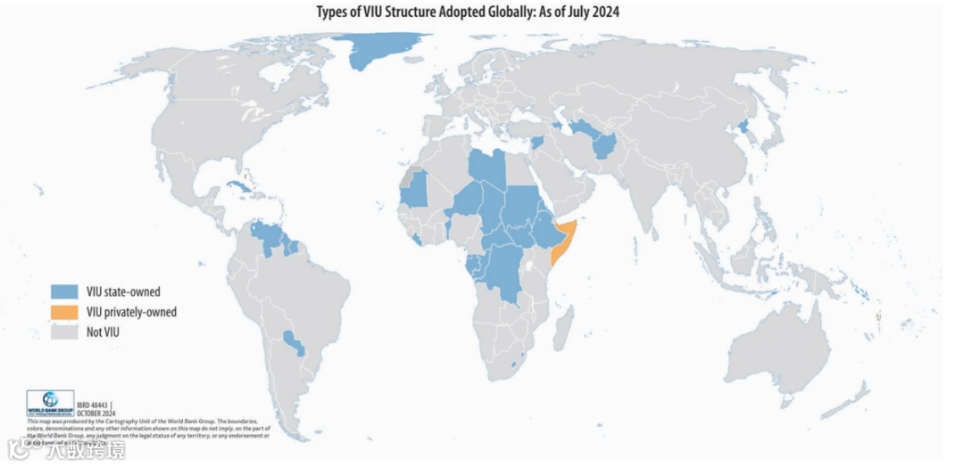 根据所有权性质的不同,VIU可分为国有企业(State-owned)和私有制企业(Privately-owned)。目前,84%的VIU为国有公司。只有11个经济体将VIU私有化,但仍保留其作为电力行业中提供综合服务的唯一公司,这些主要是小型岛国(如百慕大)和非岛国摩纳哥。这些地区因电力系统规模小、可持续性挑战突出,私营企业普遍不愿参与投资。
