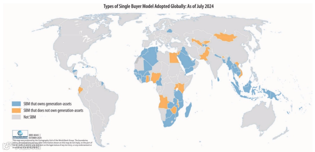 单一买方模式(SBM)目前是全球应用最广的电力市场架构,全球87个国家和地区采用这种模式,覆盖29%人口。该模式的核心是由政府指定独家电力采购方(通常为国家电力公司),统一向独立发电企业(IPP)购电,再分销给终端用户。通常,IPP通过长期购电协议(PPA)出售其电力。