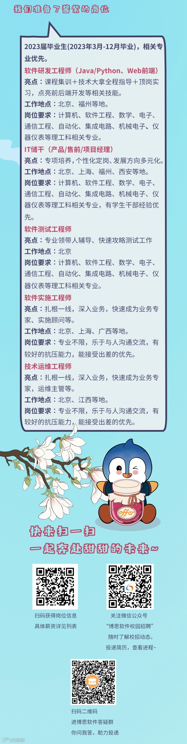 关注博思软件招聘,为您提供最新鲜的招聘信息和最便捷的招聘服务,加入博思,一起成长!