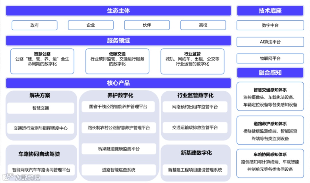 海颐软件深耕交通运输行业多年,在交通运输数字化领域具有技术自主可控的产品及服务。拥有覆盖智慧公路、低碳交通、行业监管三大服务领域的专业化产品及解决方案。秉承绿色化、智慧化的发展理念,海颐软件打造3感知、3底座、N产品、3领域、1生态的“3+3+N+3+1”的智慧交通能力全景体系,助力行业、政府、企业的数字化转型。