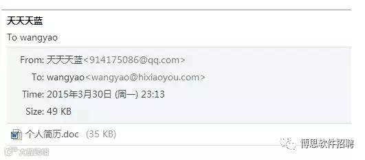(3)很多人习惯把简历放到附件就不管了,建议大家把简历的内容也复制贴到邮件正文。