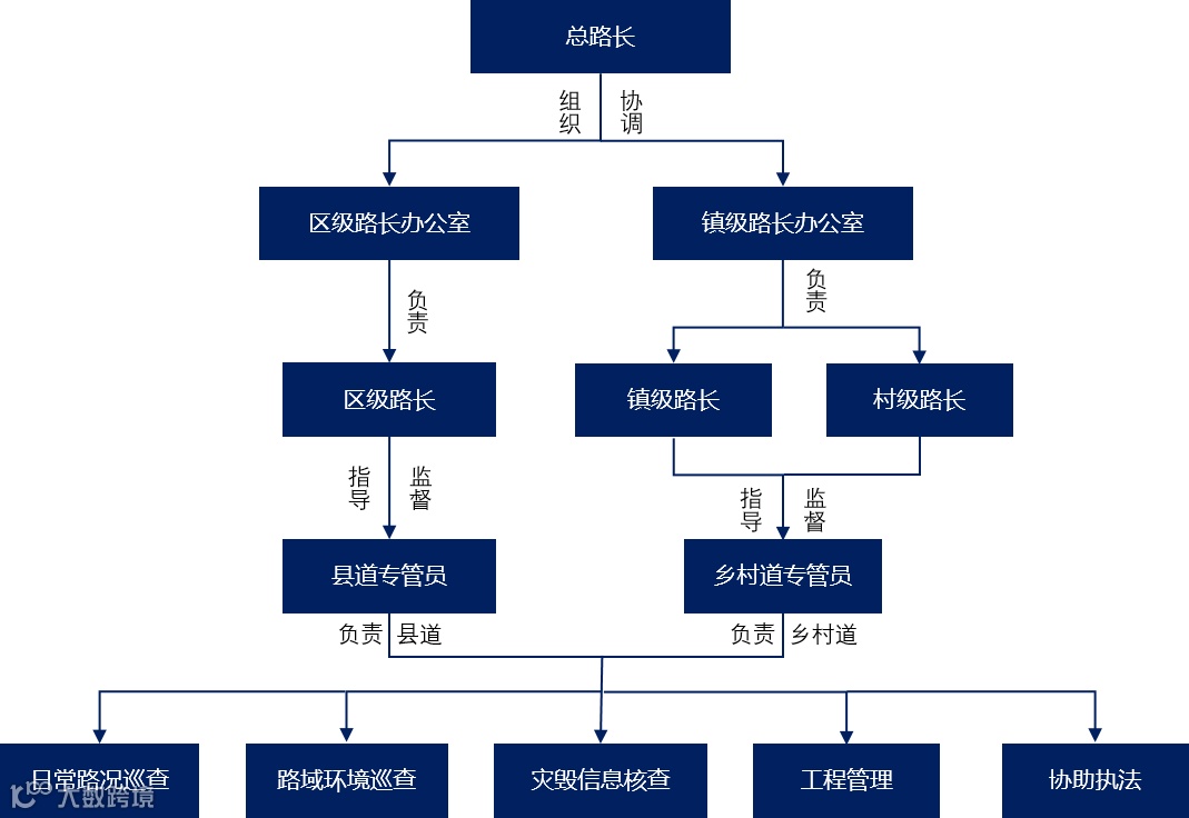 建立农村公路“路长制”管理体系,设立农村公路总路长、县道路长、乡道路长、村道路长。对路长制各路长进行管理,包括路长信息管理、管辖范围管理、路长权限管理、路长公示牌管理等功能。深入推进农村公路设施建设,开展农村公路管理养护,提升运输服务水平,推动基层治理向严密化、精细化、系统化转变。