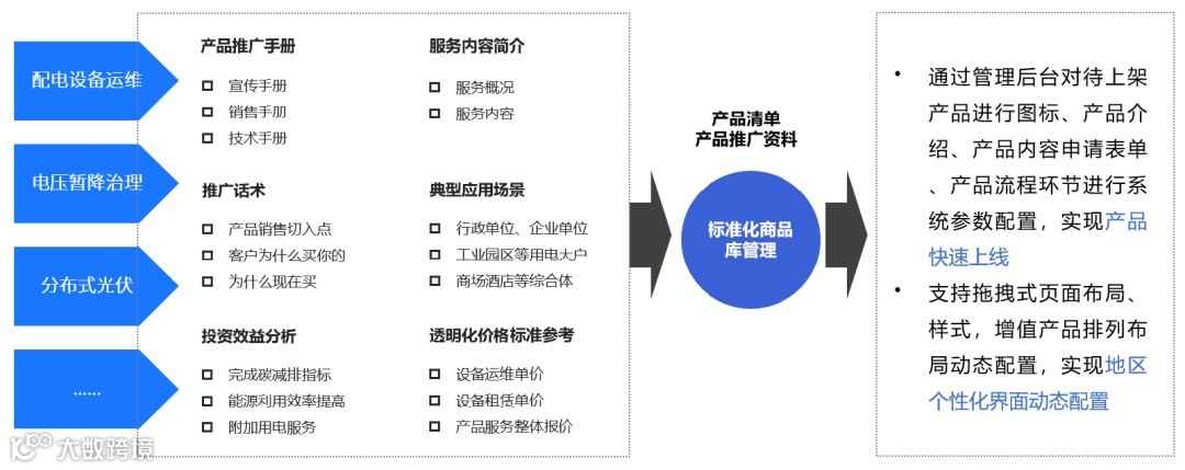 建立标准化商品库管理,创建产品清单及产品推广手册,包含产品服务内容简介、推广话术、典型应用场景、投资效益分析、透明化价格标准参考(如变压器租赁、充电桩建设、配电机柜运维等设备类服务)、经典服务案例等,便于客户经理引导客户深度了解产品和成本估算,打消疑虑,提升成单转化率。