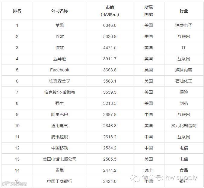 在本期“全球企业市值100强”榜单中,苹果以6046亿美元市值蝉联榜首,互联网企业谷歌以5320.9亿美元屈居第二,传统IT巨头微软以4471.5亿美元位列第三。