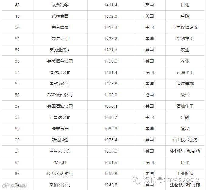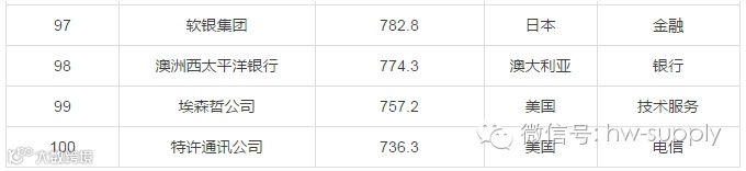本次榜单入围门槛为市值736亿美元,特许通讯公司以736亿美元市值排名第100位,刚刚入选。