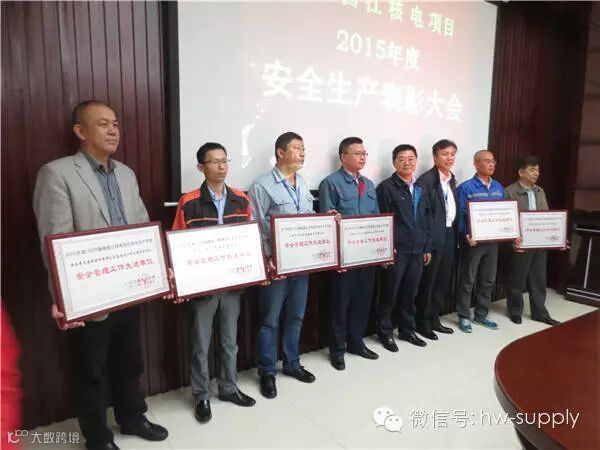 2015年,经过宏伟供应子公司浙江和能现代物流有限公司海南项目部全体人员的努力,我司2015年的安全生产工作得到了中国核电工程有限公司的肯定,并授予和能现代物流海南项目部“安全生产管理先进单位”的称号,授予王飞、卞在清“2015年度安全生产优秀管理人员”称号,和能海南项目部项目经理王飞、安全员卞在清参与本次大会并领取奖牌。