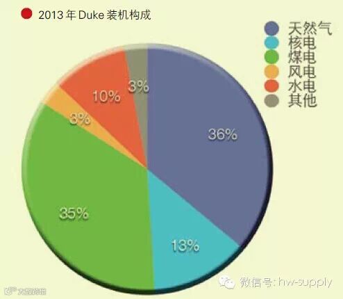 截至2013 年底,Duke 装机容量6258.1 万千瓦中,以天然气发电、煤电和核电装机占比最多,三者分别占Duke 发电装机容量的35.7%、35.2% 和13.2%。