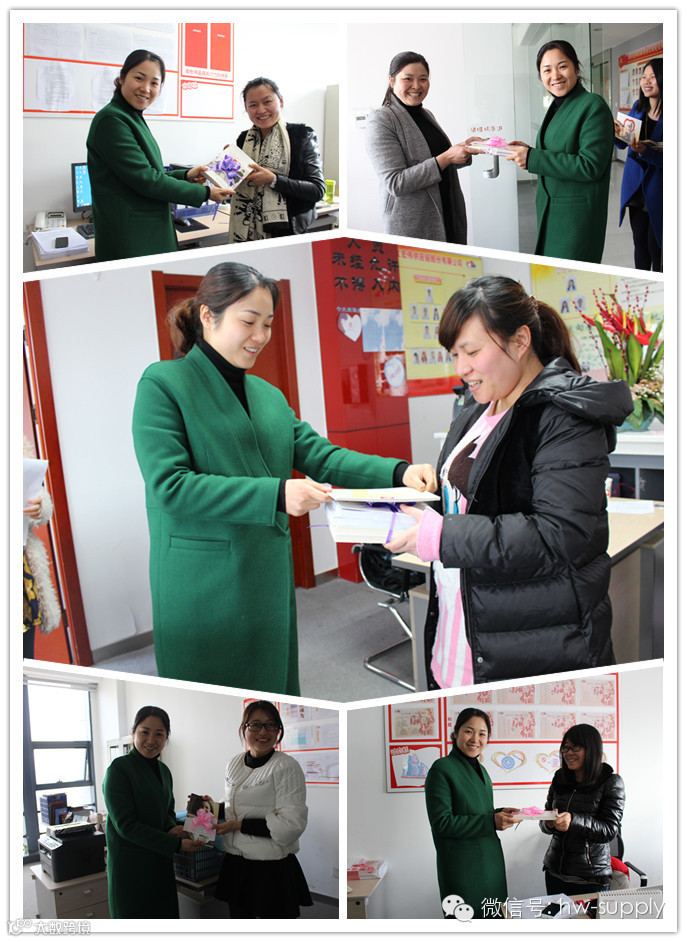 风和日丽,阳光明媚,心情格外舒畅,我要大声的告诉你们——春天来啦!此刻,宏伟公司金州总部好不热闹呀,歌声不断,笑声朗朗。公司副总经理、妇联主席李晓庆携手相关组织人员为可爱的宏伟姐妹们送上女神节的礼物与祝福!大家猜猜是什么呀?