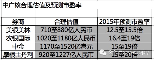 中广核此次来港拟募集约30亿美元(约234亿港元),有望成为今年香港集资额最大的新股。联席保荐人为中金、美银美林及农银国际。市面最全,四家投行对中广核的估值及盈利预测:
