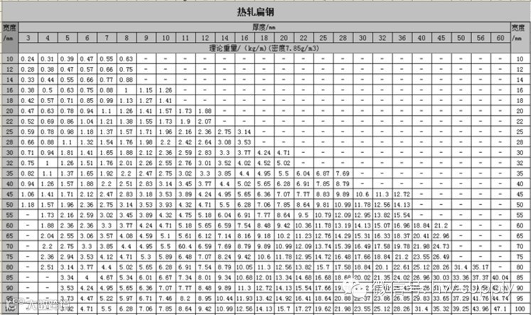 扁钢重量(公斤)=0.00785×厚度×边宽×长度
