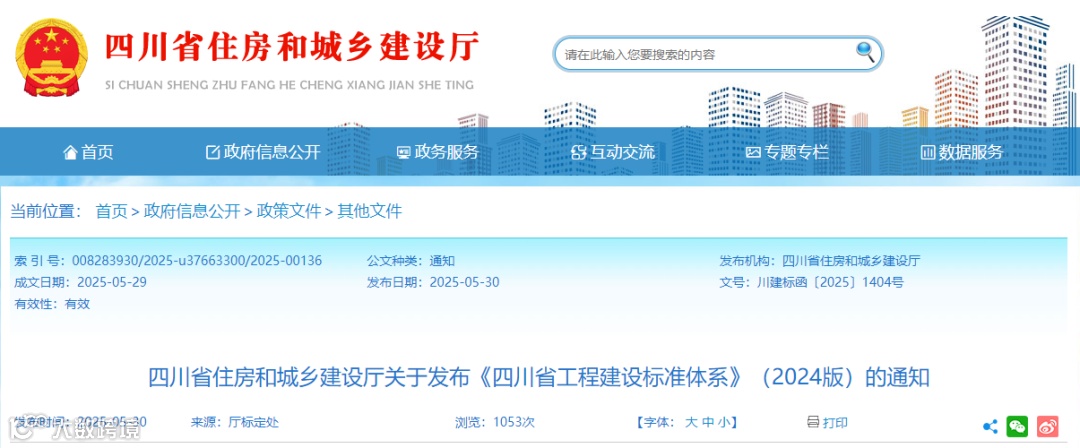 《四川省工程建设标准体系》(2024版)是组织开展标准制订、修订,加强标准管理的重要依据,也是有关单位加强标准化工作,提高标准编制质量和水平的重要学习参考,请各地住建部门和有关单位做好标准体系的学习宣贯,加强标准执行,共同推动标准体系落地落实。