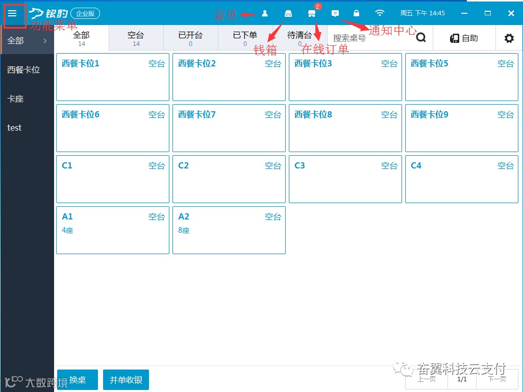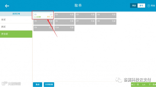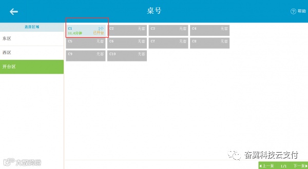 到这一步,收银完毕,收银完后,我们点击左上角桌号管理再看下,发现之前开台状态仍然还在,如图:
