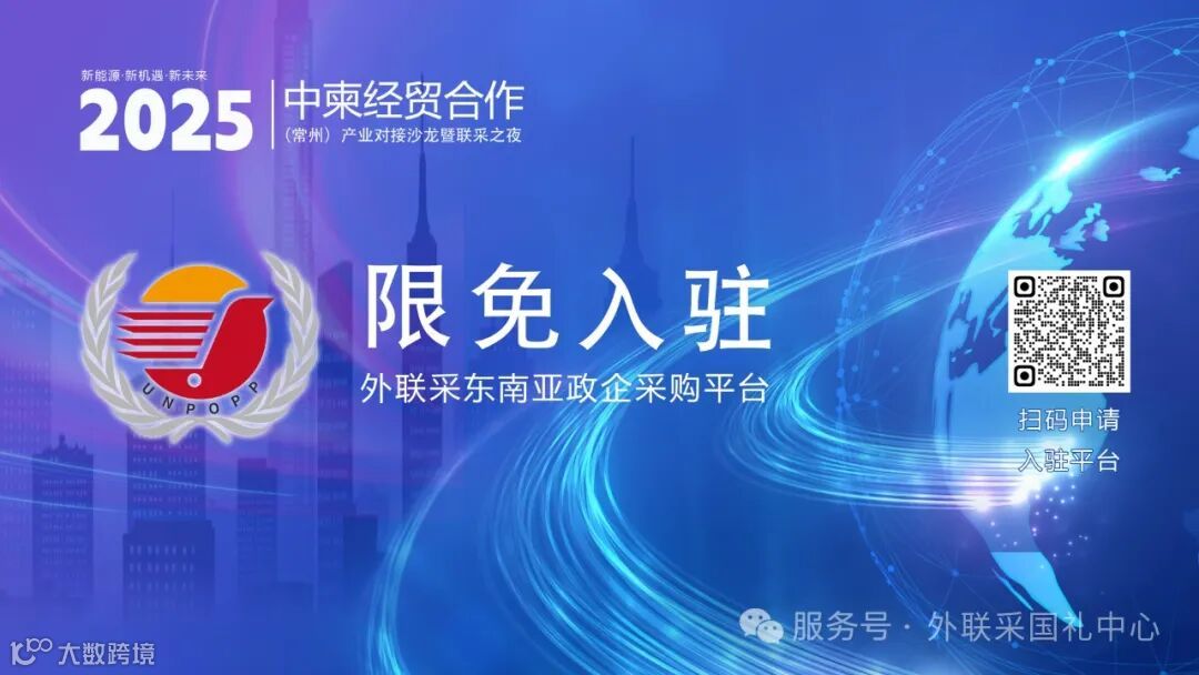 为助力企业开拓东南亚市场,外联采东南亚政企采购平台,作为中国-东盟经贸合作示范平台,现面向优质企业推出限时免费入驻计划,战略通道:直通东盟十国政府及世界500强企业采购体系,覆盖基建、新能源、数字经济等核心领域生态赋能:整合东南亚本地化服务商网络,提供清关物流、跨境结算、合规认证等全流程支持数据优势:依托超20万东盟政企采购数据库,实现商机精准匹配。
