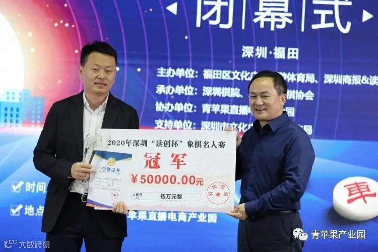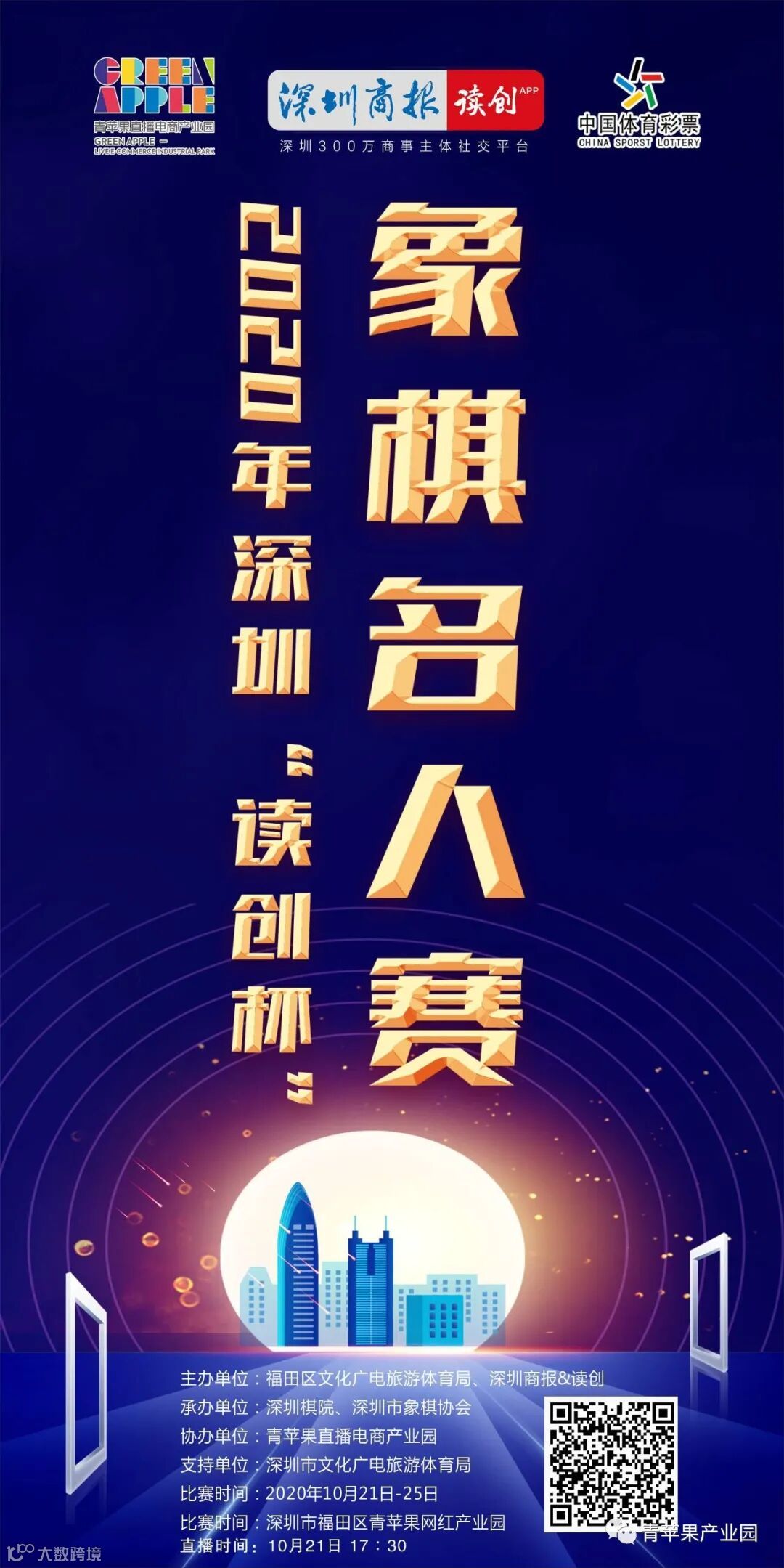 2020年深圳“读创杯”象棋名人赛得到深圳市文化广电旅游体育局的大力支持,由福田区文化广电旅游体育局和深圳商报&读创客户端主办,深圳棋院、深圳市象棋协会承办,青苹果直播电商产业园协办。