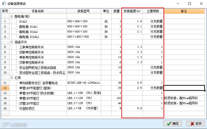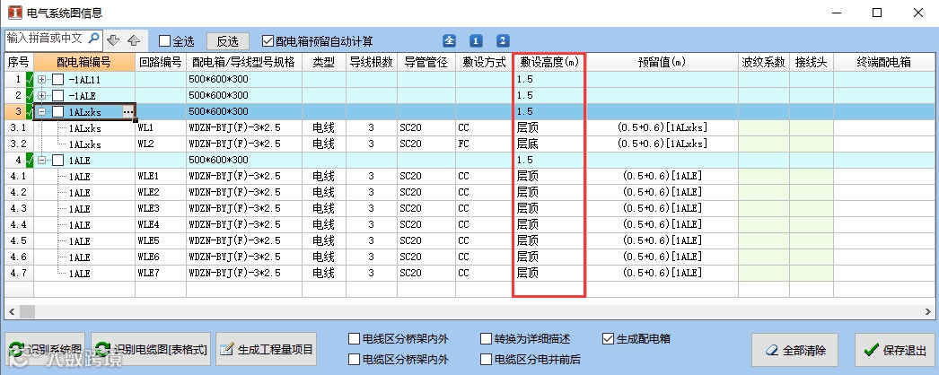 电气专业中,设备与水平线有安装高度的情况下竖向量自动生成,且对设备高度修改、回路高度修改、楼层高度修改均会自动重新计算对应的竖向量。
