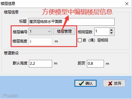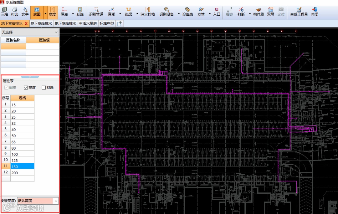 管道属性“高差”调整为 “安装高度”,减少用户在设置管道高度时的换算过程,安装高度支持默认高度、层顶等输入方式。