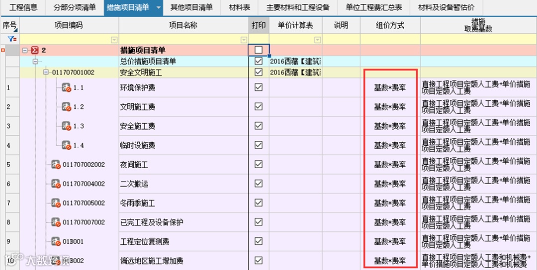 解决方案:招投标阶段 总价措施都应该是以“基数*费率”为计取;