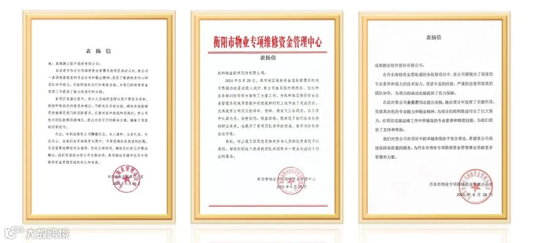 日前,衡阳市、丹东市和东港市特向鹏业发信感谢,信中对我司多名工作人员扎实、过硬的技术本领与敬业、认真的服务态度提出表扬。精研维修资金行业多年,针对资金管理平台建成后的各项服务,鹏业拥有丰富的实践经验积累,可为用户在项目实施、系统升级维护、业务咨询指导等方面,提供“行业专家、运维工具、数据服务”的全方位支撑,坚持“服务用心,办事放心、主动贴心”的工作理念,通过打造专人专项“管家式”服务样态,提升服务标准化、规范化、便利化水平,保证服务质量,实现服务增值。
