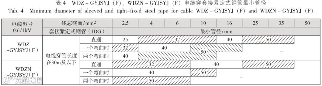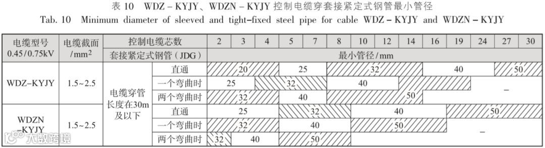 鉴于工程中有电缆穿JDG、KJG管敷设的工程实际需求,拟在19DX101-1图集修订版中增加电缆穿JDG、KJG管的数据,拟增加的数据见表1~10(供参考)。