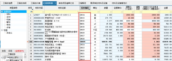 当招标文件有相应的评审材料、暂估材料时,需要在单位工程里面去响应招标文件要求。并且在软件中工程项目层级把招标的需评审的材料及设备、材料及暂估价全部显示,方便进行匹配和招标编码响应。