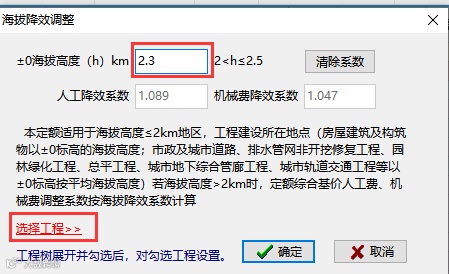 (3)海拔降效调整后单位工程的工程信息里面会显示相应的内容