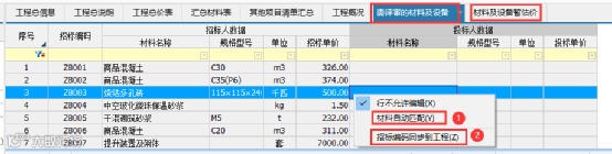 在工程总项目层级点到需评审的材料及设备里面,右键材料自动匹配,软件自动匹配后再点击右键招标编码同步到工程即可。材料及设备暂估价的设置也是相同的操作。