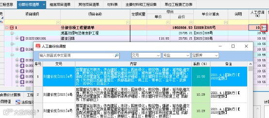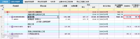 6、在分部分项界面能实时显示控制单价和组价后的不平衡报价,方便调整。