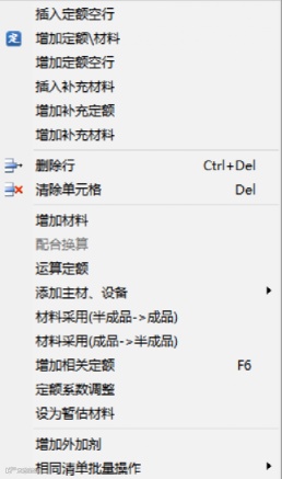 4、定额调整——单击右键,选择所需执行功能,对定额子目按需调整(结合快捷键使用更方便)