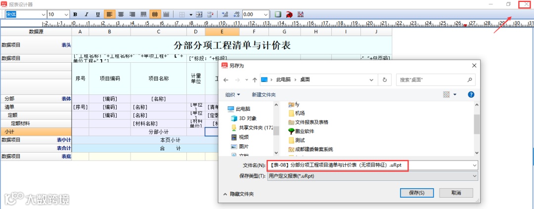 3.3 报表修改后,点击关闭窗口,按默认的保存路径,在弹出的对话窗口选择保存表格。