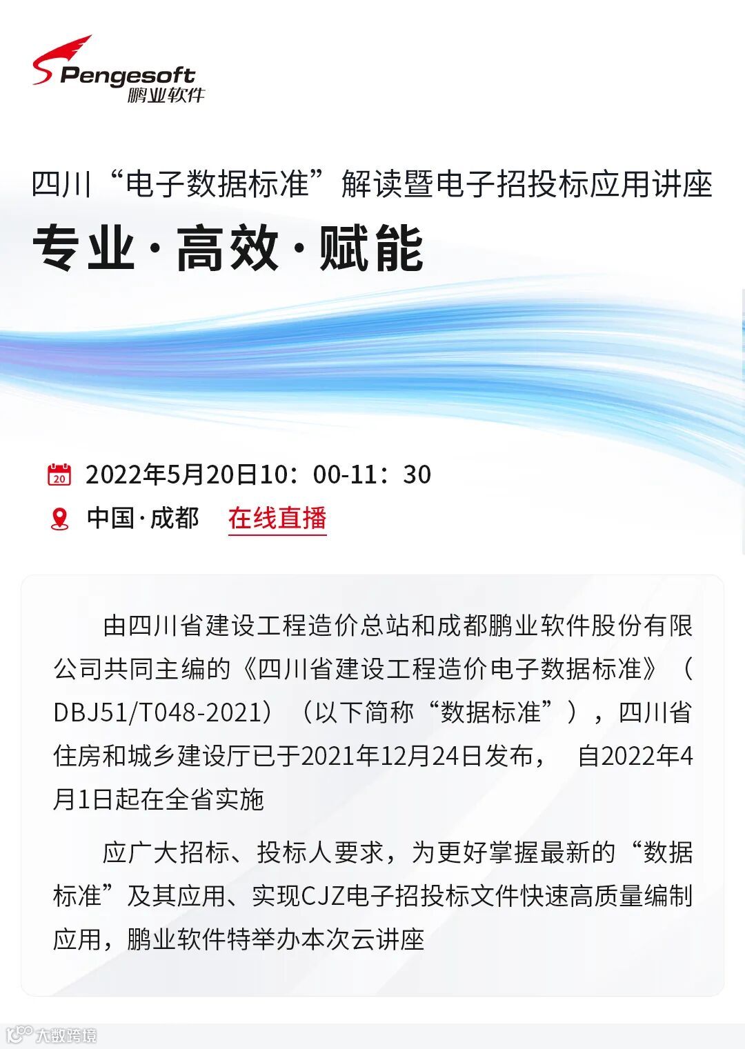 导读:5月20日上午10:00 四川"数据标准“解读暨电子招投标应用云讲座