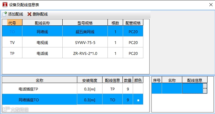 智能计算综合布线系统,设置各类设备配线信息,软件自动从末端开始统计累加配线数量,智能计算各配管配线工程量。